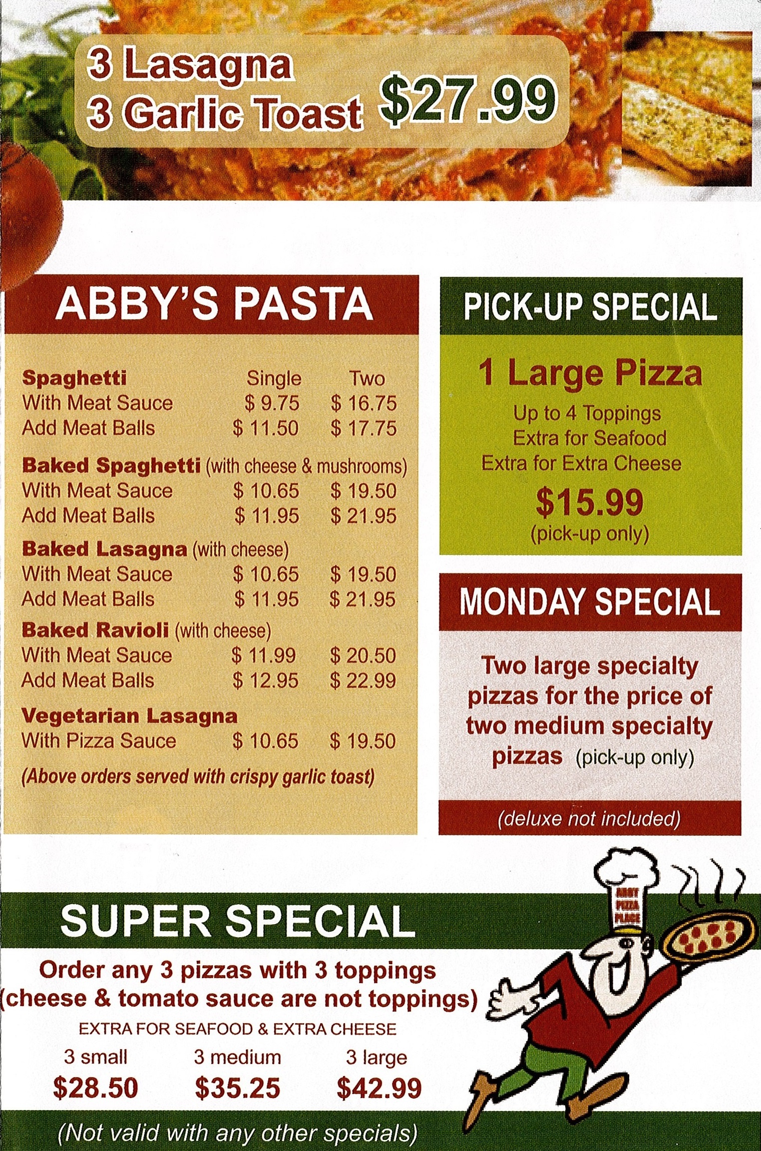 Abby Pizza Menu